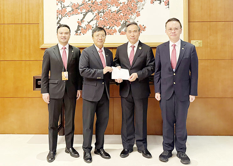 下午,代表團轉赴參加中國貿促會主辦的「全球貿易投資促進峰會」,並在會前與中國貿促會會長任鴻斌進行親切交流。