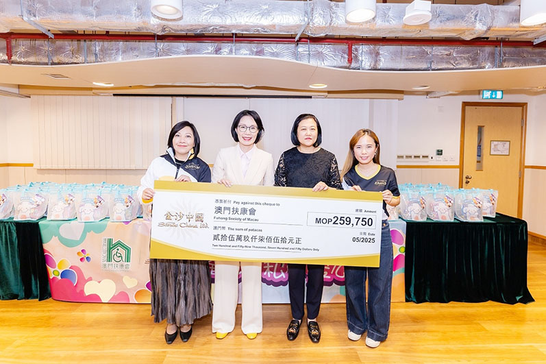 在同日舉行的支票頒贈儀式上,金沙中國企業傳訊及社會事務副總裁江慧賢代表金沙中國向澳門扶康會捐贈澳門幣259,750元,並由澳門扶康會總幹事周惠儀代表接受,以支持該會的「樂融社區贈暖意計劃」。