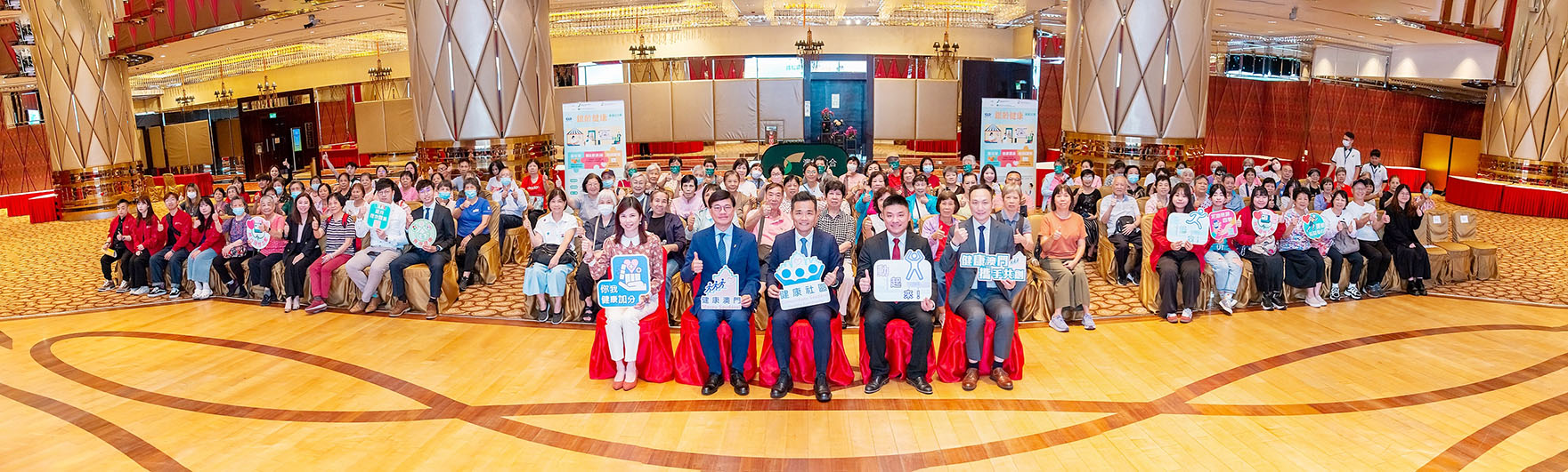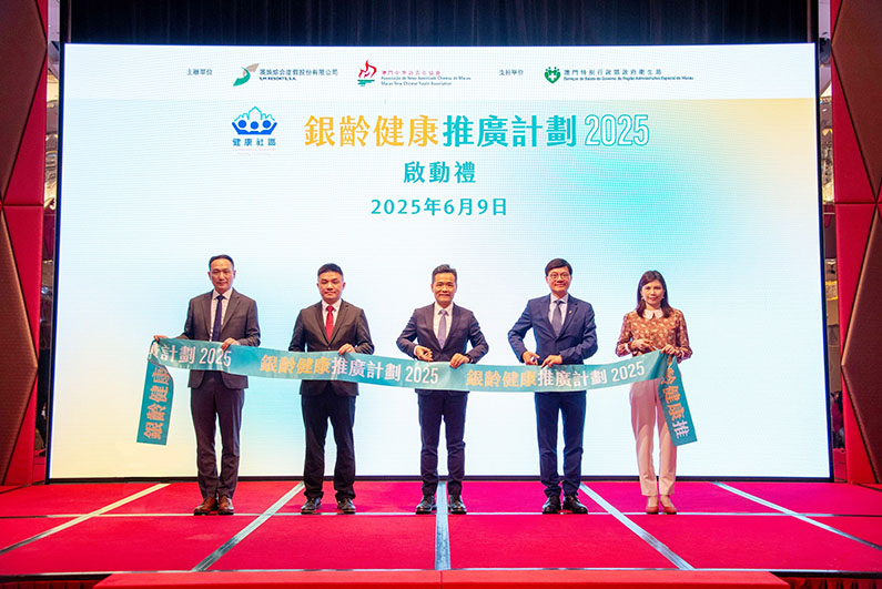 「銀齡健康推廣計劃」啟動禮 6 月 9 日在澳門新葡京酒店舉行,主禮嘉賓包括: 澳門衛生局局長羅奕龍、澳門衛生局疾病預防及控制中心健康促進處處長黃穎雯、澳門中華新青年協會理事長黃滋才、澳門中華新青年協會副會長劉佐春及澳娛綜合保安監察、環境、社會及管治總裁洪克偉。