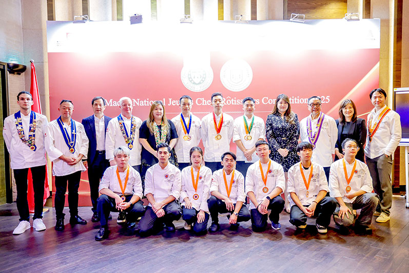 三位得獎者的傑出表現不僅彰顯本 地青 年廚師的專業潛力,更為澳門廚藝界注入新動力,展現出本地餐飲業界對培育人 才與 推動國際交流的堅定承擔。所有參賽者均獲贈頒個人化廚師制服、廚刀套裝、參 賽獎 牌及由法國國際美食協會澳門分會頒發的參賽證書。