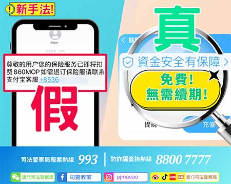 【特訊】一名本澳女大學生懷疑墮「公檢法」電話詐騙,被騙徒教唆向母親訛稱報讀「學習交流團」交費,用作「資金審查」,損失一百三十七萬港元。司警接報調查案件,暫未有人被捕。