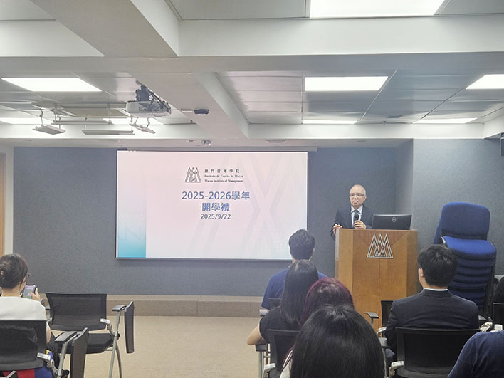 【特訊】澳門管理學院(管院)於日前舉行了2025/2026學年開學禮,師生齊聚一堂,共同開啟新學年的成長篇章。院長唐繼宗教授在致辭中熱烈歡迎全體新生加入,並強調在新的學年裡,管院將繼續秉持愛國愛澳的精神,培養學生的家國情懷和專業素質,為社會經濟的繁榮發展作出貢獻。
