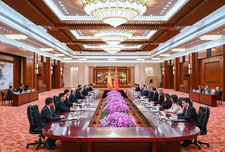 趙樂際表示,近年來,在習近平主席和費利佩六世國王的引領推動下,中西關係保持健康穩定發展。中方願同西班牙一道,落實好兩國領導人重要共識,築牢政治互信基礎,推進務實合作,密切人文交流,保持中西關係高水平發展,為兩國人民增添福祉,為世界注入更多穩定性和正能量。中國全國人大願同西班牙議會一道,密切立法機構友好交往,開展更多立法、監督經驗交流,為兩國務實合作提供法律保障。