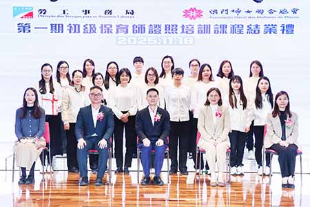 自二○一五年開始至今,婦聯已開辦初級至高級育嬰員培訓共十八期,以及初級至技師級保育師培訓共三期,累計協助逾五百名在職或有意從事托幼行業的市民,以“一試兩證”方式取得國家及本澳認可的專業證書,提升職業技能及就業競爭力。她鼓勵托育課程的學員積極走出澳門,拓闊視野,持續提升專業水平。