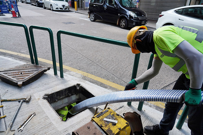 公司採用的內套管管材為聚乙烯膠管,由德國設計及生產,符合食品安全標準,設計使用壽命達50年。修復工序主要分為施工井開挖與舊管檢測,及內套管置入與修復兩個階段。首先,在不影響交通的前提下,於既有舊管道兩端分別開挖兩個施工井,並利用攝影檢測設備對管道內部狀況進行全面評估與內壁清理。及後,在確認舊管道狀況穩定且符合施工條件後,將一條比原直徑較小一階的內套管由一端施工井導入並穿引至另一端施工井,完成整段內襯作業。