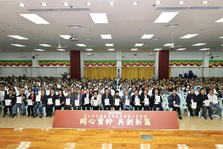 【特訊】工聯總會於12月11日八時半在工聯職業技術中學禮堂舉行第三十七屆會員代表大會第一次會議,近五百名代表出席。會議由大會主席何雪卿主持,理事長李從正作理事會工作報告,副會長兼秘書長梁偉峰作財務工作報告,監事長阮愛武作監事會工作報告,均獲大會通過。此外,大會一致通過了工聯總會新一屆理監事名單。