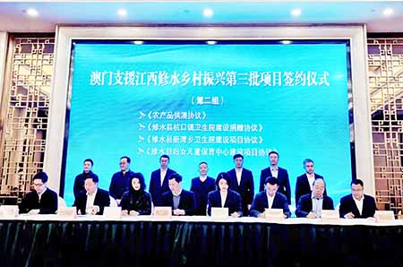 簽約儀式於二○二五年十二月三十日在修水縣舉行,澳門特別行政區政府政策研究和區域發展局局長張作文,中央人民政府駐澳門特別行政區聯絡辦公室經濟金融部副部長楊全州,江西省蘇區辦副主任傅小鵬,江西省港澳辦副主任陳俊,九江市政府副市長杜少華,修水縣委書記鄭慶華,修水縣委副書記、縣長劉婕等出席。簽約儀式後,澳門代表團前往黃庭堅紀念館、寧紅茶創新產業園等地點參觀考察。