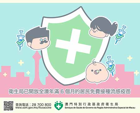 為便利居民於晚上及周日接種流感疫苗,衛生局於1月15日至31日期間延長流感疫苗接種服務時間,並增加周日上午接種時段。高風險人群無須預約,其他居民可透過一戶通“我的健康”或衛生局流感疫苗預約接種系統(https://www.ssm.gov.mo/infrs)進行預約。