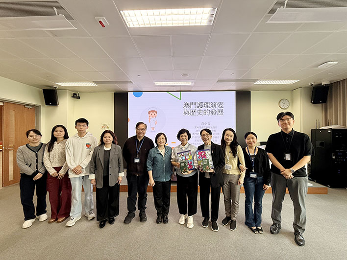 梁玉華則從護士參與政策制定、提供專業意見、倡導護理需求及投身公共衛生活動等角度,說明護理專業如何影響健康政策的形成,確保護理觀點和病人需求得到重視,從而提升護理質量與公共健康水平。她亦向學生介紹澳門社區護理模式的演變,指出隨著人口老齡化加劇,社區護理功能日益重要,護士不但要走入家庭,更應成為健康促進的推動者。
