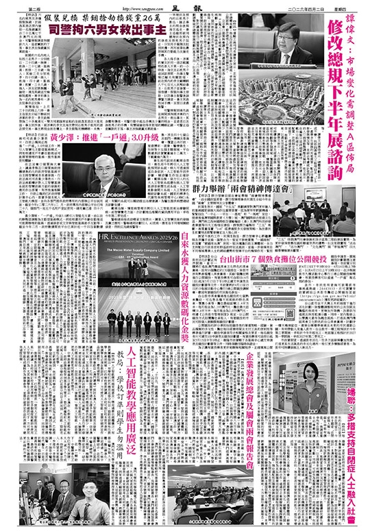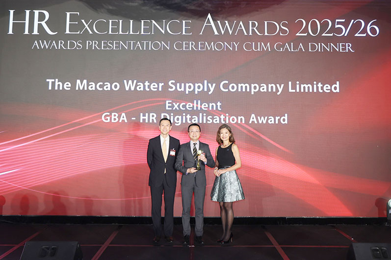 【澳門自來水股份有限公司訊】日前,澳門自來水在香港人力資源管理學會舉辦的「卓越人力資源獎2025/2026頒獎典禮」中,榮獲大灣區類別「人力資源數碼化金獎」。獎項充分肯定公司在推動人力資源數字化轉型、打造敏捷高效及以員工為本的管理體系等方面的卓越表現。與此同時,公司亦榮獲特區政府頒發「健康企業嘉許」,肯定了公司在推動員工福祉、優化職場健康方面的持續努力。