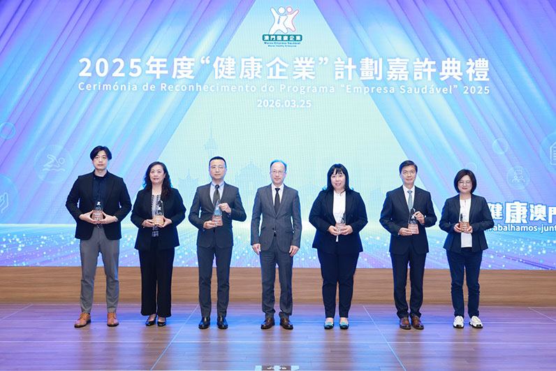 另外,澳門自來水連續兩年榮獲特區政府頒發「健康企業嘉許」,表彰公司致力營造健康的職場環境,為員工提供多元化服務,包括健康飲食、工間運動、員工健康管理站、定期健康檢查及心理健康支援等,提升員工的健康素養。