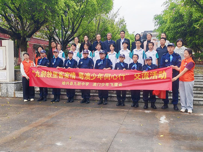 當日,一行人由原錦成總監帶領,直達韶關始興九齡中學,獲張建國校長、統戰部羅麗華局長,以及該校領導和師生代表等熱烈歡迎。隨即開展以〝九齡故里客家情、粵澳少年同心行〞為主題的一系列內容,包括非遺專題課、學唱山歌、制作宰相粉和包艾糍等,兩地學子迅速拉近距離,互相合作,氣氛熱情歡躍。通過深入互動交流,兩地學生增進了對彼此的認識,建立了友誼。