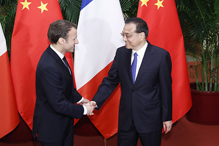 【中新社北京1月9日電】(記者 余湛奕)中國國務院總理李克強9日下午在北京人民大會堂會見來華進行國事訪問的法國總統馬克龍。