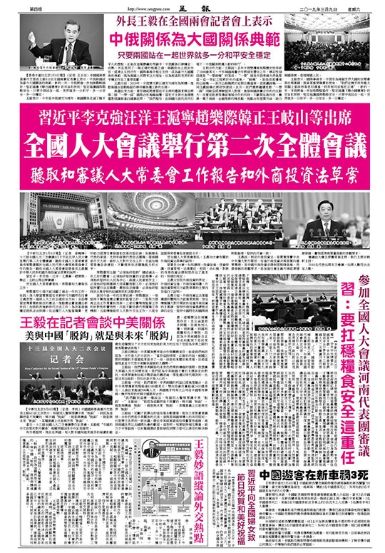 習近平李克強汪洋王滬寧趙樂際韓正王岐山等出席 全國人大會議舉行第二次全體會議 聽取和審議人大常委會工作報告和外商投資法草案