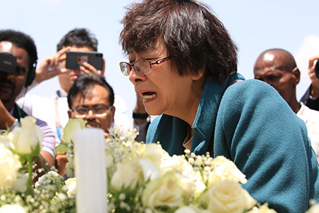 當日,在埃航的組織下,中國以及其他國家的遇難者家屬來到事發地,為他們逝去的親人舉行了一個簡單的悼念儀式,寄託哀思。剛剛抵達埃塞俄比亞的中國遇難者家屬輪流來到追悼台前,獻上鮮花、蠟燭等物。期間,遇難者家屬們的哭喊聲令人動容,並通過拜祭衣冠冢等方式為親人送別。