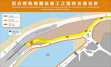 【特訊】配合輕軌媽閣站施工,西灣大橋媽閣端入口將於周六(15日)上午起實施臨時交通安排,靠近西灣大橋媽閣端入口的一段西灣湖景大馬路實施封閉交通,前往氹仔的車輛需使用靠近西灣湖畔新開闢的臨時道路通往西灣大橋,大橋入口將恢復雙線行車;電單車駕駛者取道上述臨時道路上橋後可繼續使用電單車專道;至於往澳門旅遊塔方向的車輛則維持使用現時車道。為期約6個月。