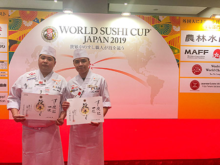 【特訊】佳景集團積極鼓勵員工參與國際的比賽盛事提升自我。繼本月中出戰「第七屆日料世界挑戰賽」香港區預賽後,再派出兩名優秀的日本料理師傅參加8月21至23日在日本東京舉行的「2019日本世界壽司盃」,與來自世界各地的頂級壽司師傅同場較技,相互觀摩學習,同時亦憑實力雙雙晉身世界壽司師傅20強之列,其中,千喜膳日本料理的林靖師傅更勇奪「出色表現嘉許獎」,江戶日本料理的楊偉豪師傅則獲得日本壽司界高級別認證「黑帶一段」,為澳門廚藝界增添光彩。