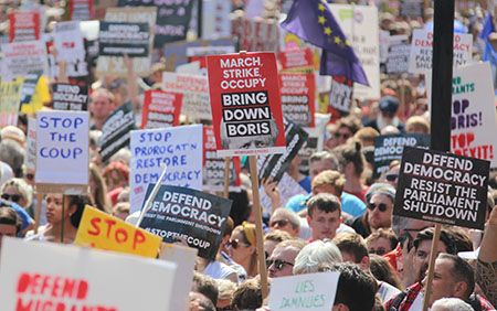 抗議活動遍及英國30多個城鎮,包括愛丁堡、貝爾法斯特、劍橋、埃克塞特、諾丁漢、利物浦、曼徹斯特以及伯明翰等。與此同時,一份反對首相“暫停議會”的請願書已經獲得一百多萬人的簽名。