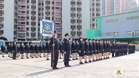 【特訊】治安警察局於昨日在特警隊大樓為新入職警員舉行就職儀式,儀式由治安警察局梁文昌局長主持,劉運嫦副局長、黃偉鴻副局長、梁慶康副局長及各部門主管均有出席,各人為新警員戴上警章。梁文昌局長在儀式上祝賀所有新警員排除萬難,順利完成課程,正式成為一名警察,並勉勵他們為保障澳門社會的安全和穩定竭盡所能。
