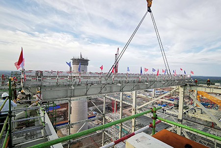 中國華電香港公司印尼玻雅項目部總經理谷秋成稱,此舉標誌著該項目1號機組鍋爐鋼結構即將全面完工,體現了玻雅人在新冠肺炎疫情期間通力協作戰勝困難信心和保質保量保工期決心。