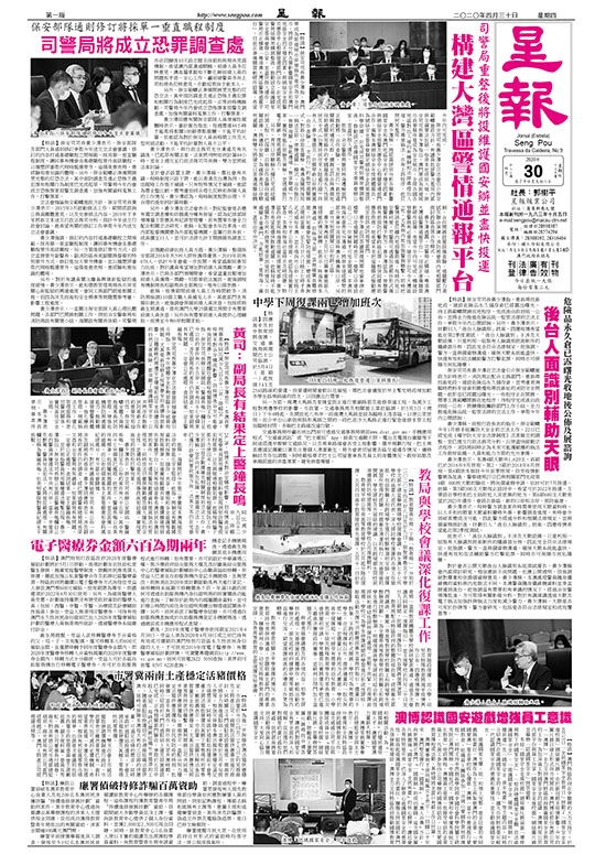 【特訊】教育暨青年局(下稱「教青局」)分別於二○二○年四月廿八日及廿九日,假聖羅撒女子中學中文部千禧堂舉辦兩場學校復課會議,與全澳七十七所學校的負責人或代表,深入探討學校復課的各項工作細節,包括教職工和跨境學生進行核酸檢測的安排、復課演習所取得的經驗、校園衛生清潔的執行、友善措施的開展、學生評核及升留級的建議,以及跨境師生回校前須遵循的防疫措施等,以確保學校五月復課順利。