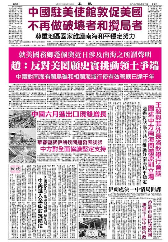 就美國務卿蓬佩奧近日涉及南海之所謂聲明 趙:反對美罔顧史實挑動領土爭端 中國對南海有關島礁和相關海域行使有效管轄已達千年