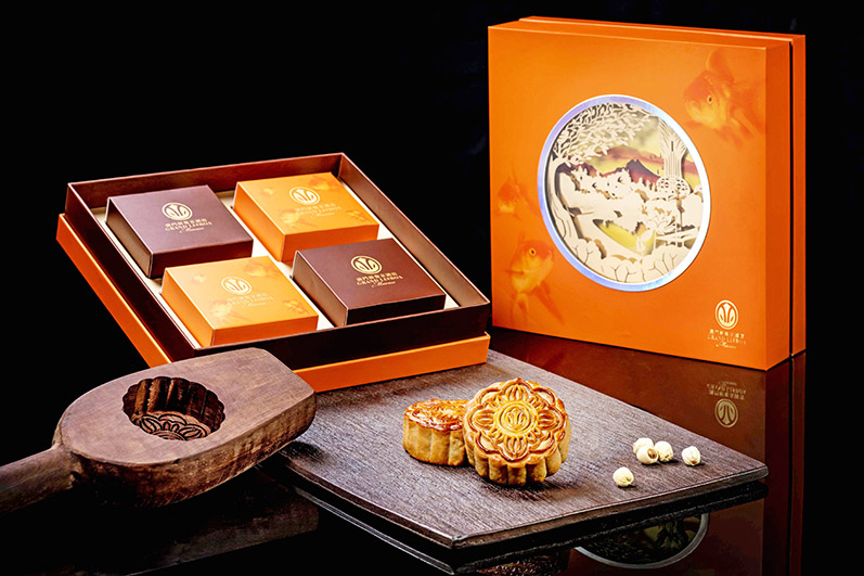 新葡京酒店邀請澳門本地才華橫溢的平面設計師何潤建及其團隊聯手設計今年的六件裝月餅禮盒,此次造型典雅的月餅禮盒設計靈感來自「8餐廳」的迷人內飾。「8餐廳」最顯著的特色在於將具有象徵意義的中式元素巧妙地融匯在其室內設計中,從代表吉祥富貴的數字「8」到象徵活力十足的金魚,皆彰顯獨特氣派又極富傳統中國特色。當賓客步入這家米芝蓮星級中餐廳時,映入眼簾的便是位於餐廳中央的圓形立體水晶球。這個耀眼的水晶球與倒映在下方水池的倒影相連,形成相互交疊的「8」字圖案,猶如一輪明月映於海中。「8餐廳」的每一個象徵性元素都在今年的月餅禮盒設計中交織融合,於這個中秋節為每一位賓客帶來幸運與祝福。