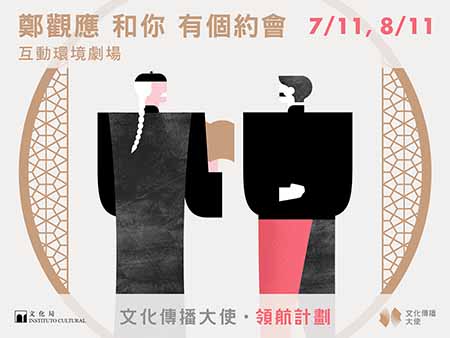 【特訊】由文化局與文化傳播大使共同策劃的領航計劃,11月7日及8日一連兩天上演《鄭觀應和你有個約會》互動環境劇場,邀請市民到鄭家大屋作客,瞭解鄭家大屋深厚的歷史積澱,感受澳門百年家族的積善義舉,細讀《盛世危言》中的富強救國之道。演出門票將於10月13日上午10時起於澳門售票網發售。
