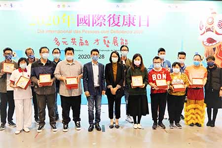『2020年國際復康日—多元共融‧才藝展能』網上直播活動,由中聯辦副秘書長兼社會工作部黃華蓋部長、社會工作局韓衛局長、勞工事務局黃志雄局長、教育暨青年局老柏生局長、衛生局鄭成業副局長、交通事務局羅誠智副局長、巿政署文康及公民教育廳高佩珊廳長、勤立自閉症人士之家高燕萍會長主持活動開幕儀式。韓衛局長表示,期望透過是次活動,向社會大眾展示殘疾人士的才藝潛能,營造社會共融的氛圍。