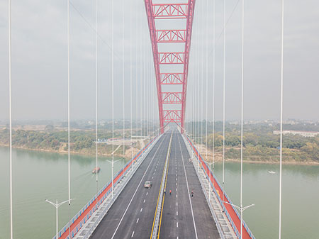 中國工程院院士、廣西大學教授鄭皆連介紹,平南三橋建設的過程中,實現了多項關鍵技術的突破。首創將“圓形地連牆+卵石層注漿加固”的拱座基礎方案成功應用到拱橋施工領域;首創配備300噸吊裝能力的纜索起重機系統,且搭建高達200米的裝配式塔架,實現電氣化自動控制;首創應用北斗衛星定位系統、智能張拉等技術,以力主動控制代替剛度被動控制,將200米高度的塔架頂部偏位精確控制在20毫米以內;首創基於影響矩陣原理的“過程最優,結果可控”扣索一次張拉計算理論,實現大跨徑拱橋主拱圈線形控制技術的新突破,使9000噸拱肋合龍精度在3毫米內;首創採用C70自密實無收縮復合膨脹混凝土,運用真空輔助連續四級泵送工藝,助力鋼管混凝土拱橋管內混凝土灌注施工品質邁上新的台階。