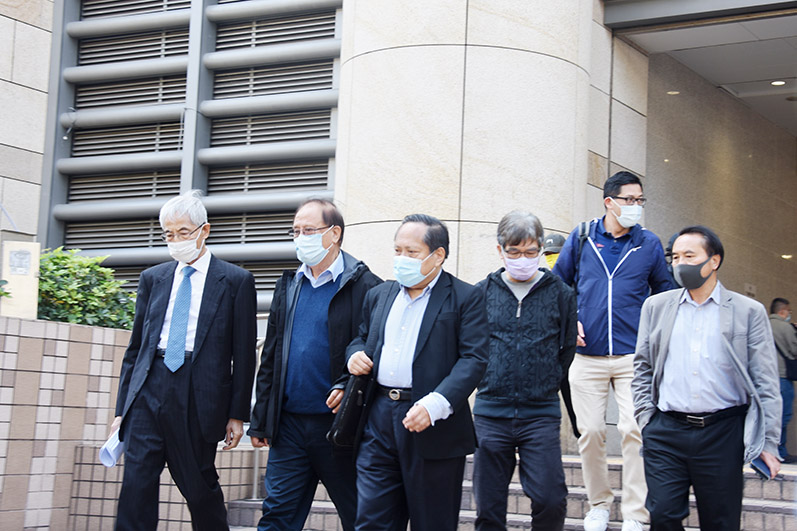 黎智英因涉嫌違反香港國安法,現正還押於赤柱監獄,當日由囚車押抵法院應訊。其餘8名被告,包括李卓人、吳靄儀、梁國雄、何秀蘭、何俊仁、梁耀忠、李柱銘及區諾軒,他們同被控於2019年8月18日組織未經批准集結及參與未經批准集結兩項罪名。