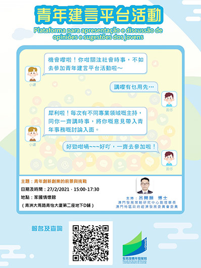 【特訊】教育及青年發展局轄下駿菁活動中心將於2021年4月10日至5月22日期間逢星期六(5月1日除外)舉辦“愛服務‧樂分享”義工基礎培訓,支持青年關心社會,養成服務社群的良好品格。活動內容包括知識培訓:瞭解義工的基礎概念及態度、自我認識、建立團隊溝通技巧、認識澳門的社會服務機構和服務對象,從而學習服務技巧;服務實習:探訪及參觀澳門社會服務機構、協助大型活動現場工作、策劃小組活動及義工生活營等。完成培訓課程及參與服務實習達6小時者將獲發聲明書。持續參與服務且表現出色的義工,將有機會獲推薦參與外訪交流活動。