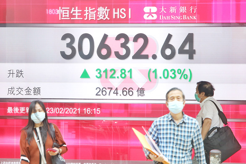 藍籌股方面,滙控去年稅前盈利跌34.24%超預期,並將就2020年度派發一次股息,其股價午後曾飆6.5%,見49.5港元達近一年高位,之後升幅收窄,收市僅升0.4%;中生製藥飆12%為表現最好藍籌股。