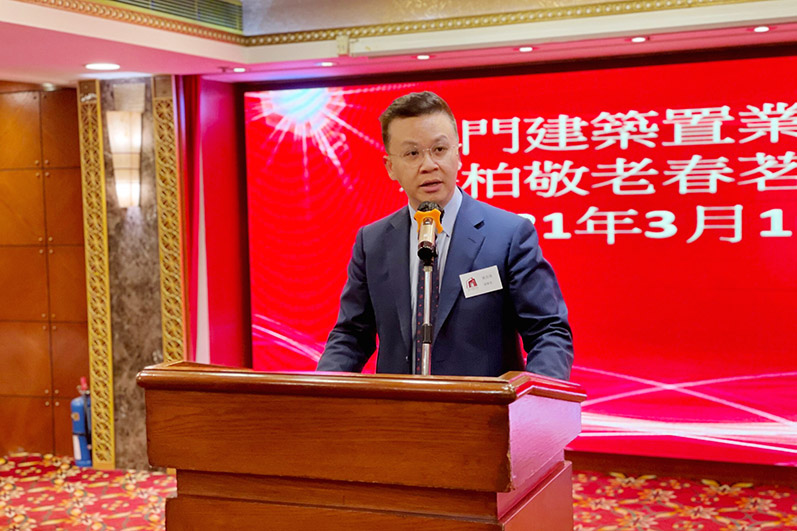 【特訊】澳門建築置業商會舉行松柏敬老春茗聯歡晚會,商會理事長莫志偉指,商會將繼續聯繫建築業界,配合國家發展及特區法施政,構建促進業界交流的橋樑,並向政府建言獻策,檢討完善地產相關稅務安排,讓市場可健康發展,讓廣大市民改善居住生活。