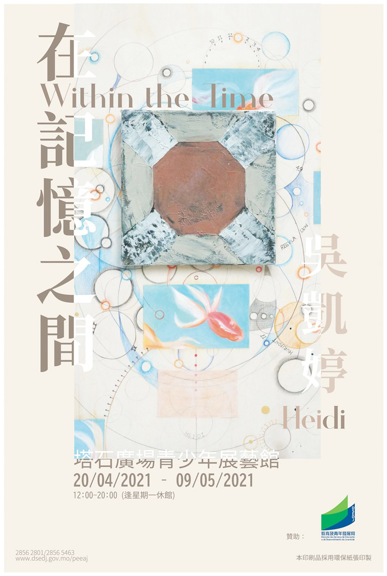 【特訊】教育及青年發展局轄下青少年展藝館將於2021年4月20日至5月9日展出“Within The Time在記憶之間──吳凱婷個人作品展”。是次展覽將展出青年藝術家吳凱婷新系列的作品,內容是關於回憶。“時間”一直是作者創作路上探索的題材,展覽的每一件作品都代表一段故事,這些故事出自作者花了一年時間所編寫的一本故事書《The Bedtime Story》。展品結合文字與抽象圖案,試圖呈現另一類的懷舊日記。精彩作品除可提供欣賞外,還希望觀眾回想自己美好而獨有的珍貴回憶。