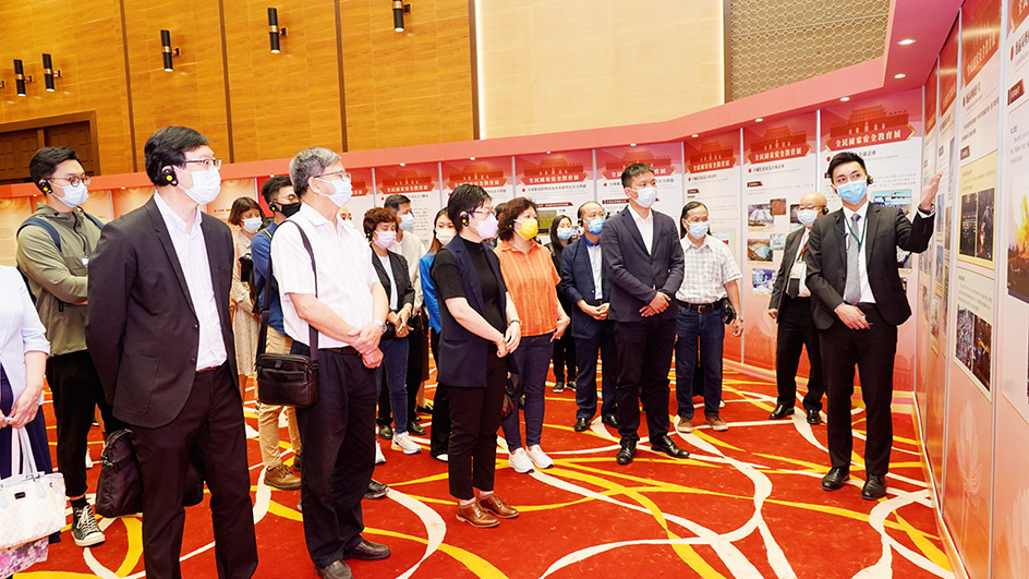 在工作人員的引領下,參觀團依次認真觀看展覽的四個部分“百年未有之大變局下的國家安全”、“堅持總體國家安全觀構建大安全格局”、“維護國家安全確保‘一國兩制’行穩致遠”和“國家安全全民有責”,並認真聆聽講解。