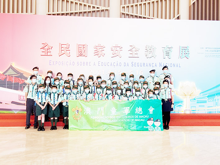 一眾童軍在澳門總監梁顯方、公共事務總監林立、助理公共事總監高寶琪的帶領下參觀「全民國家安全教育展」。梁顯方表示,通過今次參觀「全民國家安全教育展」,全體童軍對全球大變局下的國家安全形勢有了更深的了解,明白到維護國家安全的重要性,以及認識到國家與澳門在完善國家安全體系建設方面的最新進展。而童軍總會作為愛國愛澳的青年社團,將繼續發揮青年社團的力量,緊密配合特區政府方針政策,培養更多愛國愛澳的堅實力量。