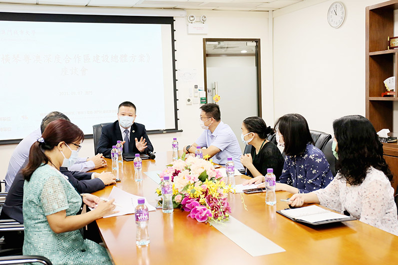 領導小組委任協理副校長葉桂平帶領教育部人文社科重點研究(夥伴)基地——澳門城市大學澳門社會經濟發展研究中心及科研管理處於昨(7)日上午十一時在氹仔校區召開大學四十周年校慶系列活動之“橫琴粵澳深度合作區方案座談會”,聽取大學有關學院及部門意見。