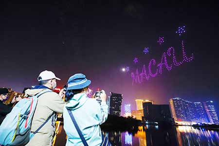 「翱遊澳門無人機表演盛會」為夜空的視覺藝術表演,利用科技、2D及3D立體聯動設計、燈光和音樂等元素,綻放流光溢彩,點綴澳門夜空,為居民及旅客帶來新的夜間娛樂體驗,深化「旅遊+」跨界融合。
