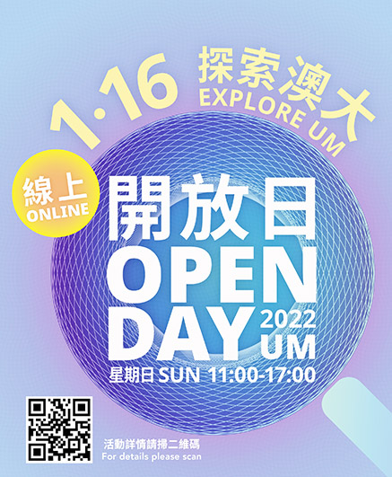 詳情請瀏覽澳大線上開放日網頁https://openday.um.edu.mo/或關注澳大官方微信「澳門大學"和澳大臉書「University of Macau"。查詢請致電8822 8400或電郵至co@um.edu.mo 與澳大傳訊部聯繫。