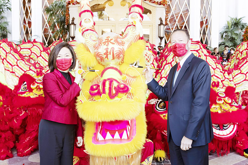 於大年初三(2 月 3 日)及初四(2 月 4 日),永利澳門有限公司副主席兼執行董事陳志玲(Ms. Linda Chen) 及永利澳門有限公司總裁兼執行董事高哲恒(Mr. Ian Michael Coughlan) 率領一衆管理層成員主持金龍醒獅點睛儀式,寓意來年大展鴻圖、財源廣進,為喜氣盈盈的賀歲慶典揭開序幕。
