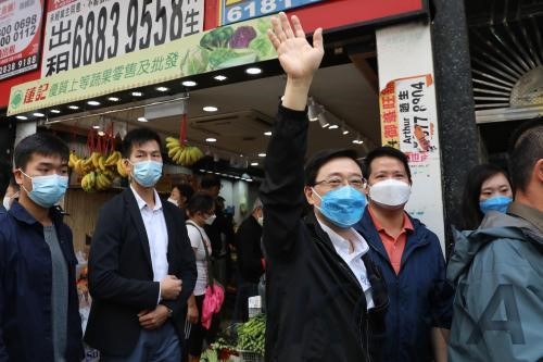 【香港中通社5月3日電】(記者 李明珠)香港特區第六屆行政長官候選人李家超3日前往香港仔,拜訪香港漁民團體聯會的相關界別選委。李家超表示,會繼續努力爭取選委支持,並讓市民認同他的做法和目標。