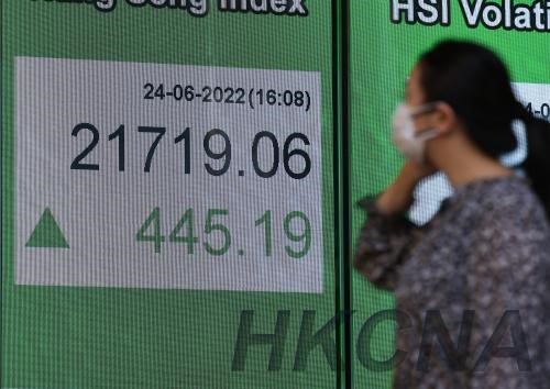 【新華社香港6月24日電】香港恒生指數24日漲445.19點,漲幅2.09%,收報21719.06點。全日主機板成交1484.05億港元。