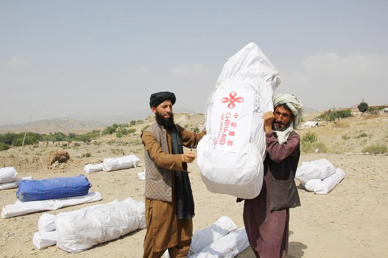 6月22日,阿東南部發生強烈地震,造成1000多人遇難,近2000人受傷,數萬座房屋被毀。中國政府第一時間決定向阿富汗提供5000萬元人民幣的緊急人道主義援助。包括帳篷、折疊床、毛毯在內的首批物資已於27日運抵喀布爾。