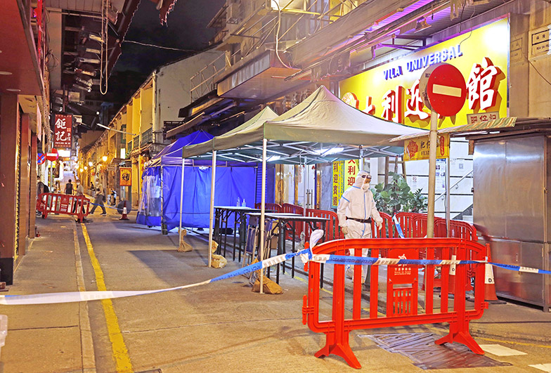政府公布,前日(十四)截至晚上九時最新紅、黃碼區清單,福隆新街七十三號大利迎賓館地下及閣樓新增為紅碼區。昨日大利迎賓館被列為紅碼區後,而側旁的東京賓館亦被圍封,更有 防疫人員駐守,周邊的商戶雖然已在相對靜止狀態下休業,但亦被警方封條周住。附近一帶街道禁止行車。