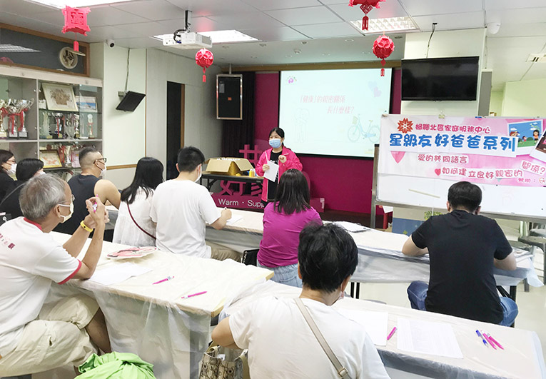 【特訊】為鼓勵父親提升在親職教育上的角色,與家人共同經營緊密的家庭維繫,婦聯北區家庭服務中心早前舉行“愛的共同語言──如何建立良好的親密關係” 主題講座,期望通過講座分享和手工環節增進家庭關係,提升家庭功能,並促進建立良好的丈夫和父親的角色形象。活動吸引十組親子家庭,共三十多人參加。