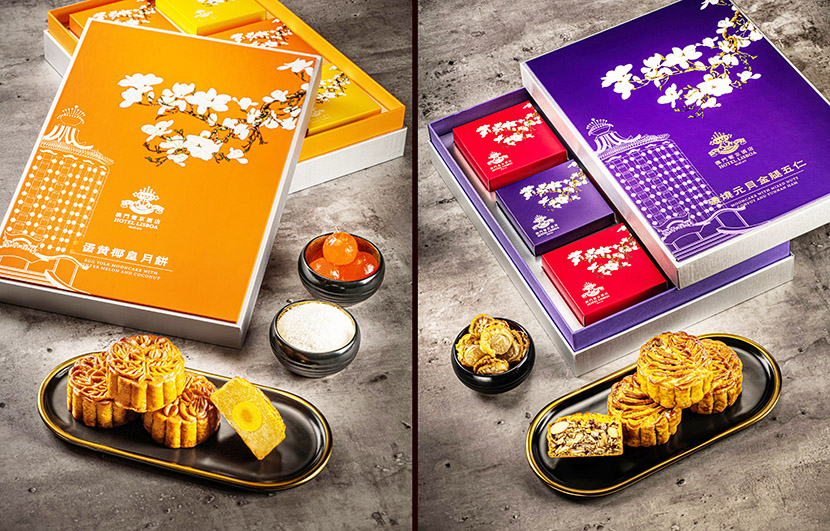 人月兩團圓,佳禮添心意。這個中秋,葡京酒店推出四款別具特色的月餅禮盒 – 「蛋黃白蓮蓉月餅」、「蛋黃金翡翠月餅」、「蛋黃椰皇月餅」及「磯燒元貝金腿五仁月餅」以迎合賓客不同喜好。色彩繽紛的禮盒設計,為佳節更添愉悅的氣氛;外盒包裝以玉蘭花絢爛綻放的美景,配搭極具標誌性的葡京酒店圖貌,讓您與摰愛在花好月圓之時,共享「京」典滋味。