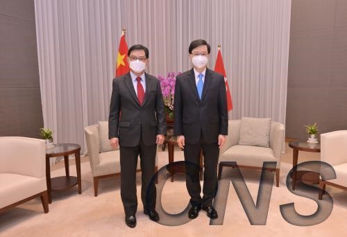 李家超說,在中央政府的支持下,“一國兩制”在港成功實踐,香港將繼續發揮“一國兩制”下香港的獨特優勢,積極融入國家發展大局,背靠祖國,聯通世界。香港和新加坡在貿易投資、金融服務、教育、文化、創新科技等領域將開拓更多交流和合作空間。