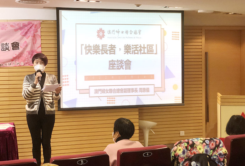 【特訊】澳門婦聯頤康協會日前在婦聯綜合服務大樓三樓舉行「快樂長者,樂活社區」座談會,邀請到長者事務委員會委員、婦聯總會副理事長周惠儀作專題分享。婦聯頤康會長陳愛珠認為,疫情下長者會感到焦慮及不安,希望透過是次座談會提升長者面對疫情的積極心態,以及收集理監事對於《長者服務十年行動計劃》的意見。