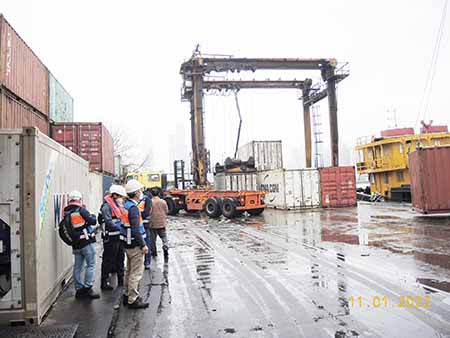 海事局人員巡查內港及九澳多個貨運碼的設施設備,並登上靠泊於碼頭的躉船檢查;就船隻的登岸設施、躉船吊運貨物操作、船上安全裝備、貨物起卸區、存放區、辦公室和休息區等項目是否符合安全規範作出檢視,現場給予安全提醒和意見。整個行動共檢查了7艘靠泊碼頭的躉船,整體沒有發現重大異常狀況,僅有少量安全項目需要改善,例如不當攤放雜物、躉船的登乘安全防護網未繫穩等,巡查人員已即時通知現場人員儘快糾正,並將安排複檢。